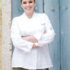 Woman chef jacket, modern and cool fit. Extractable buttons in silver plastic, pocket on the breast and pen-holder pocket on the left sleeve.